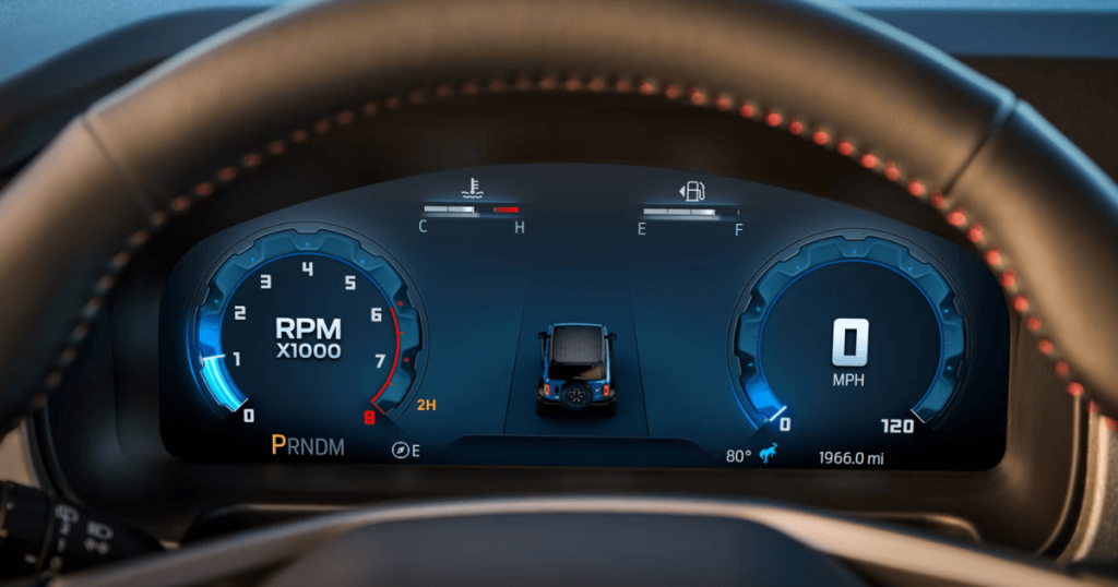 The Ford Bronco’s “tech-forward” interior places much more emphasis on keeping you connected and comfortable while out on adventures. While some may favor the Wrangler’s more Spartan, utilitarian simplicity, it simply does not match the Bronco on features. Both vehicles feature large touchscreens, but the Bronco offers more standard digital features, such as a 12-inch digital gauge cluster that outpaces the Wrangler’s 3.5-inch or 7-inch displays on many trims.