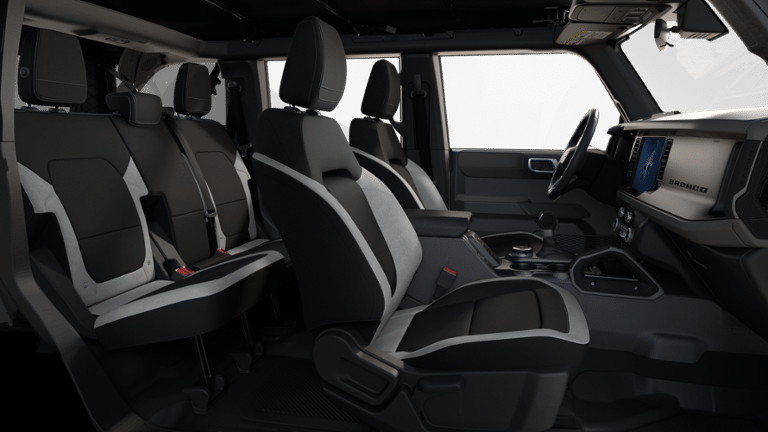 Equipment Group 222A Mid Package: 17" Carbonized Gray-Painted Aluminum Wheel; Rear Parking Sensors; Power Outlet - Back Side of Center Floor Console; Dual Smart Charging USB Ports; 2.3L EcoBoost I-4 Engine; Front Row Heated Seats; Driver and Front Passenger Illuminated Sliding Visor Vanity Mirrors; AM/FM Stereo; Dual-Zone Electronic Automatic Temperature Control; Connected Navigation; P255/75R17 A/T Tires; Ambient Footwell Lighting; Remote Start System; Cloth Bucket Seats; 2-Door Intelligent Access with Lock/unlock. Ford Co-Pilot360: Auto High-Beam Headlamps; Rear View Camera; Pre-Collision Assist with Automatic Emergency Braking; Blind Spot Information System (BLIS); Lane-Keeping System. Carbonized Gray Molded-In-color Hard Top. Side Step. Front and Rear Floor Liners Without Carpet Floor Mats. Abstract Bronco 32" Spare Tire Cover. Cargo Area Protector. On-Road Assistance Kit. First Aid Kit. **Equipment listed is based on original vehicle build and subject to change. Please confirm the accuracy of the included equipment by calling the dealer prior to purchase.**