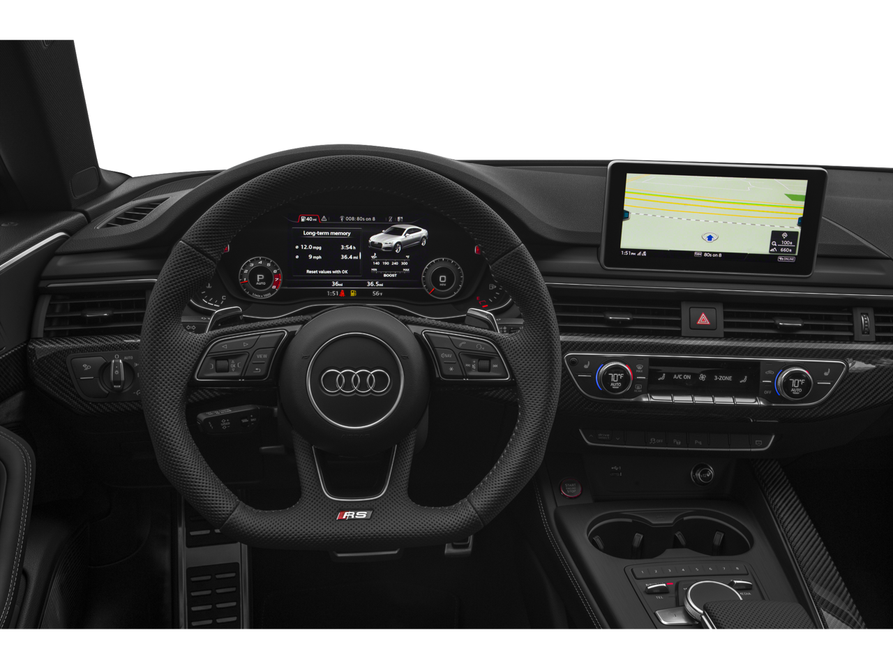 See what's behind you with the back up camera on this small car. The vehicle offers Apple CarPlay for seamless connectivity. The leather seats are soft and supportive on this unit. The rear parking assist technology on this unit will put you at ease when reversing. The system alerts you as you get closer to an obstruction. This vehicle offers Android Auto for seamless smartphone integration. This unit offers Automatic Climate Control for personalized comfort. This Audi RS 5 features a hands-free Bluetooth® phone system. The installed navigation system will keep you on the right path. The Audi RS 5's Lane Departure Warning helps keep you in your lane. The vehicle has a V6, 2.9L high output engine. Maintaining a stable interior temperature in this vehicle is easy with the climate control system. This small car shines with an exquisite blue finish. This Audi RS 5 is equipped with all wheel drive.