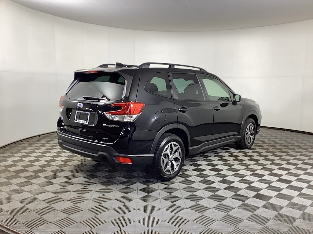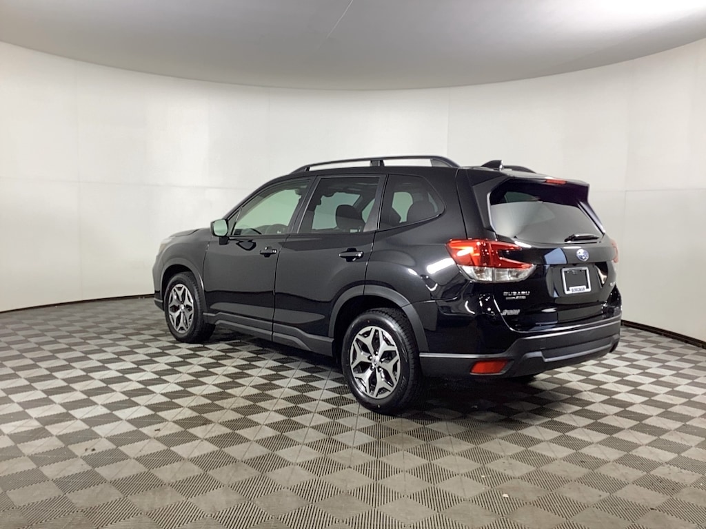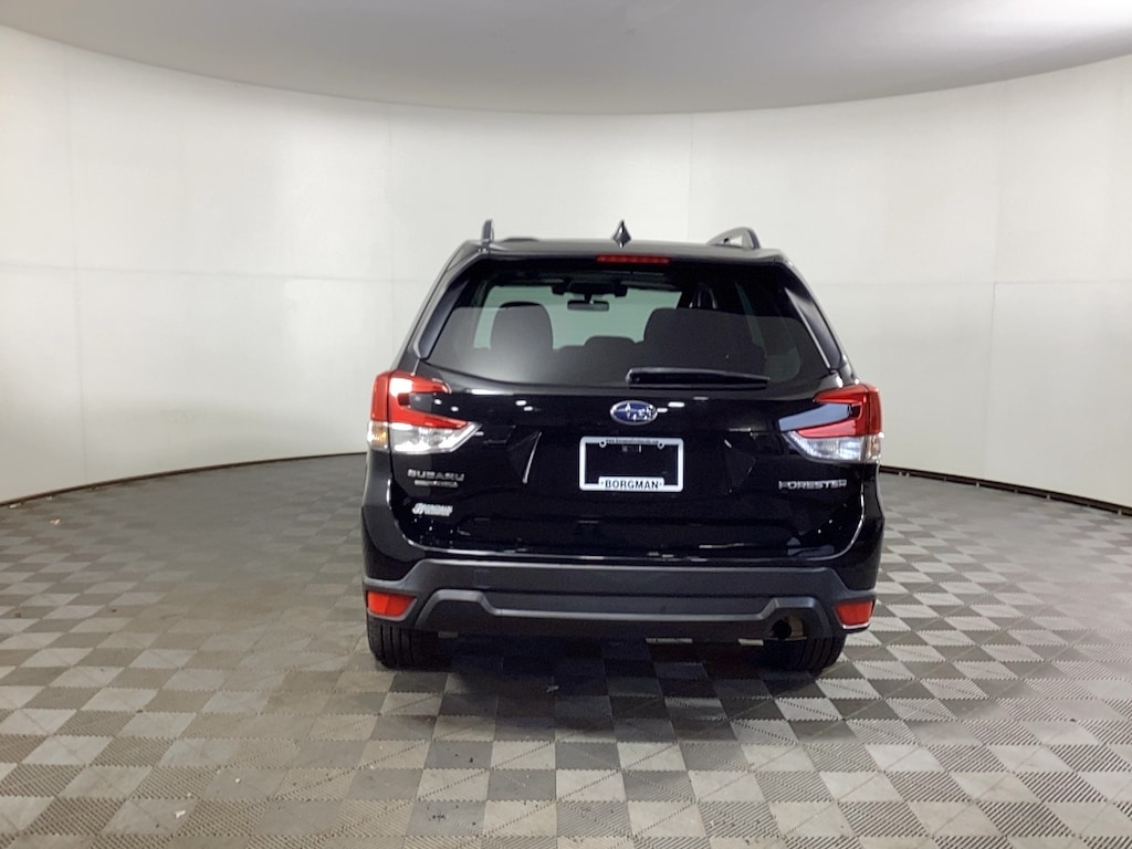Borgman’s Used Car Center of Grand Rapids brings you this well-equipped, black 2020 Subaru Forester Premium, a four door SUV featuring a 2.5-liter four-cylinder BOXER engine producing 182 horsepower and 176 lb-ft of torque, paired with a Subaru-developed continuously variable transmission (CVT) and full-time all-wheel drive for balanced performance and good fuel efficiency. It comfortably seats five passengers with cloth upholstery and heated front bucket seats, complemented by a power moonroof for added cabin openness. For safety, it includes Subaru’s EyeSight Driver Assist system, which uses dual cameras for features such as adaptive cruise control and lane keeping. The Forester Premium comes equipped with the Subaru STARLINK multimedia system, including a touchscreen capable of playing music via CD, MP3, or USB connections, and supports smartphone integration. Additional amenities include a leather-wrapped steering wheel, power driver's seat with lumbar support, and standard roof rails, making it a well-rounded, practical SUV for daily driving and adventure alike.